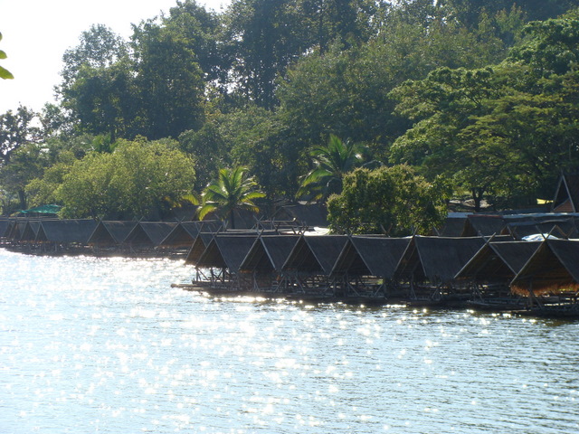 ฉันปั่นขึ้นมาที่สันเขื่อน เรือนแพร้านอาหารเรียงชิดกันเป็นทิวแถวรอความคึกคักของผู้คนยามใกล้เที่ยงกระทั่งย่ำเย็น เป็นภาพคลาสสิกที่อยู่คู่ผืนน้ำแห่งนี้มายาวนาน